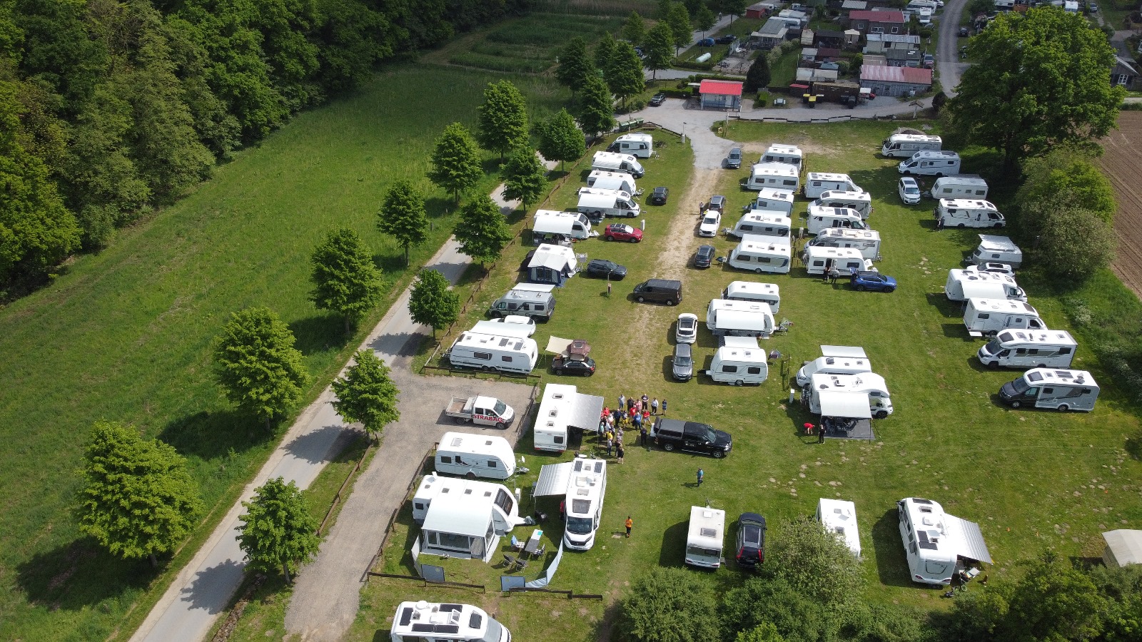 Unsere große Wiese vor dem Campingplatz mit unbeschrankter Einfahrt und unkomplizierter Nachtkasse